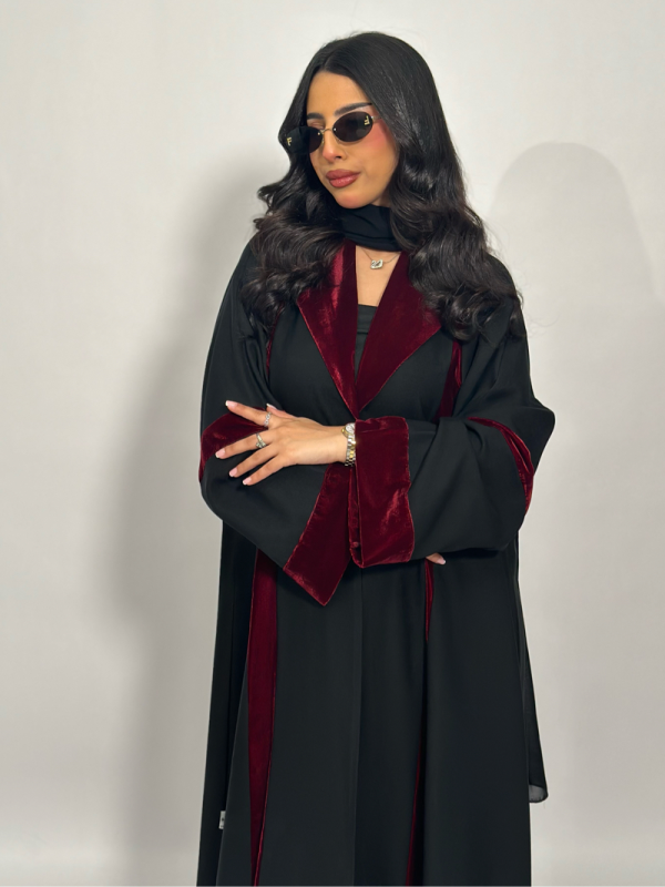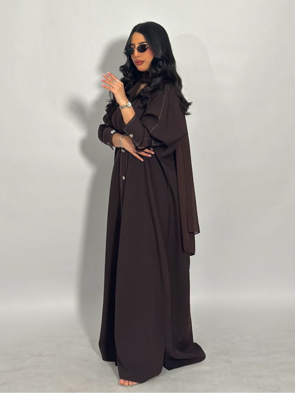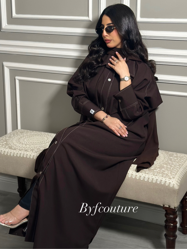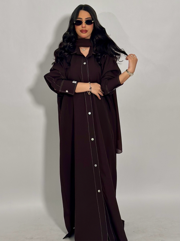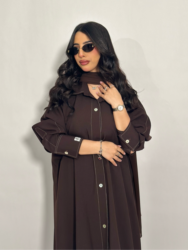 عبايه بنيه مع خيط ابيض القماش مني مت