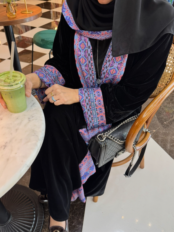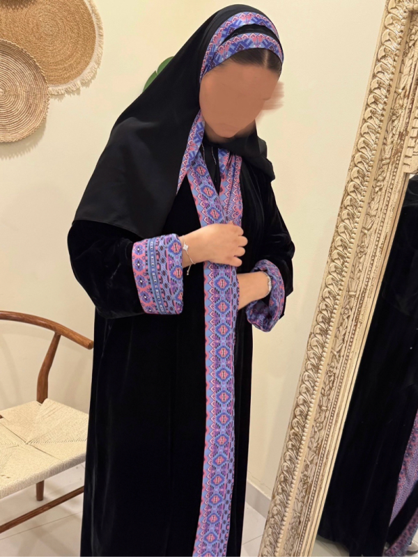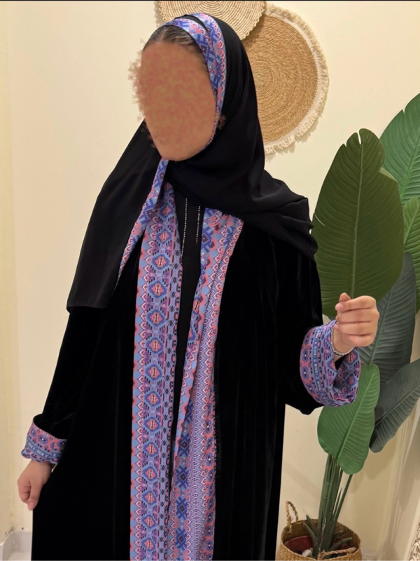 عبايه مخمل اسود مع حاشيه متوفر لونين الوردي والأزرق