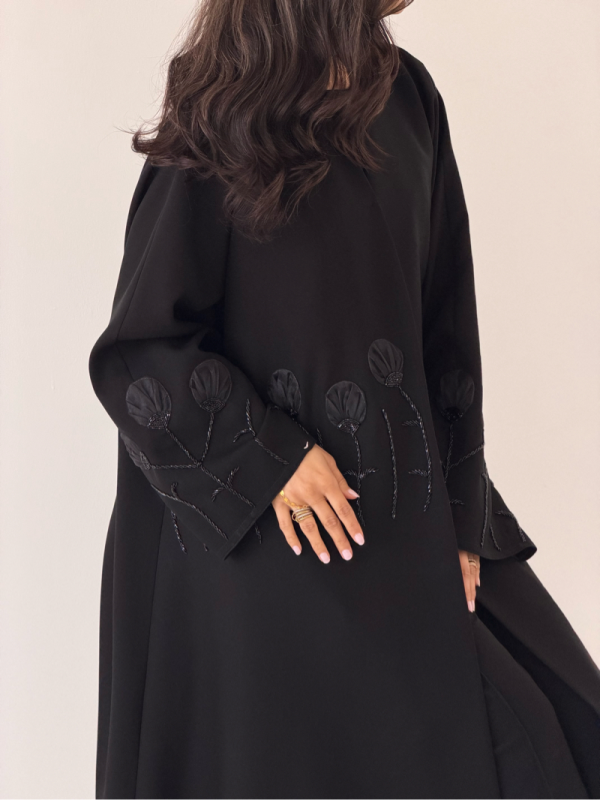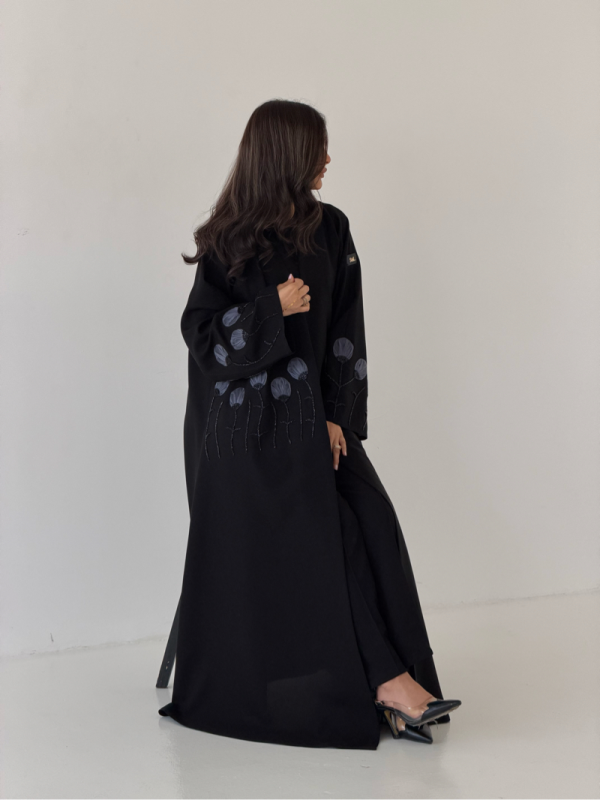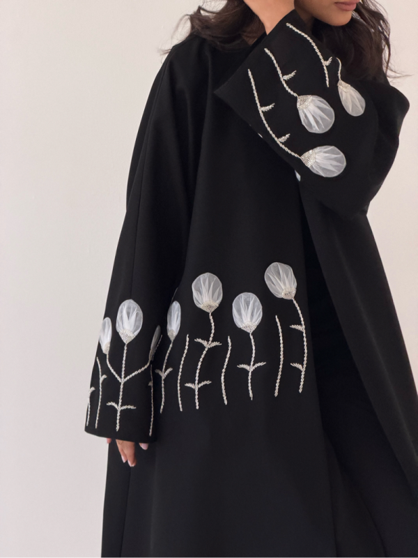 عباية كريب مع شك اللون الاساسي للتطريز رمادي وممكن اختيار اللون التبيض او الاسود بالملاحظات