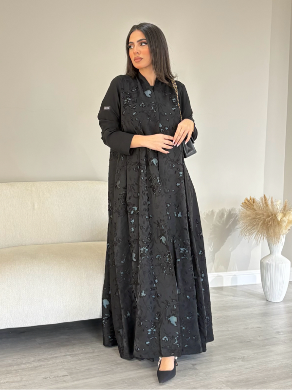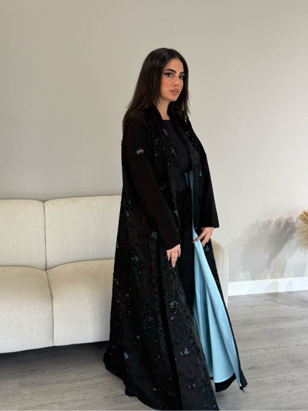 عباية سودة مبطنة باللون الازرق (تيفاني) وممكن تغيير اللون حسب الرغبة🤍