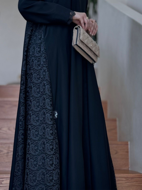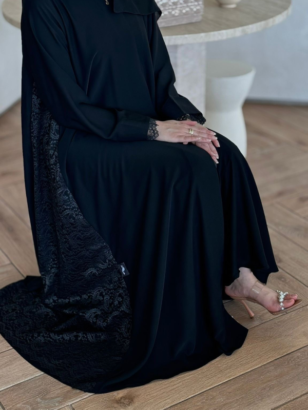 الخامة فاخرة ( قماش ألماس ) 🖤 اللون الأسود الداكن يعطي إحساس بالهيبة والرسمية، مع لمسة أنثوية ناعمة من الدانتيل. 🧵 أطراف الأكمام مزينة بلمسة دانتيل بسيطة تكمل التصميم بدون تكلف.