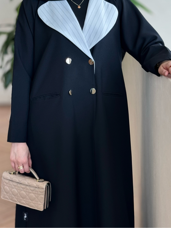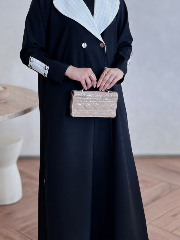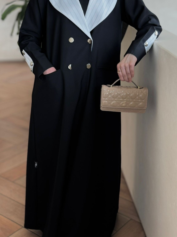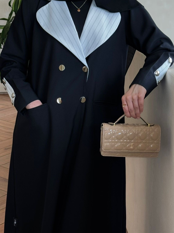 عباية بليزر فخمة بتفاصيل مرتبة وقصّة دقيقة تعطي حضور أنيق وراقي، قطعة مميزة تبرزك بأسلوب كلاسيك عصري وتستاهل تكون أساس في خزانة ملابس كل جميلة 💖