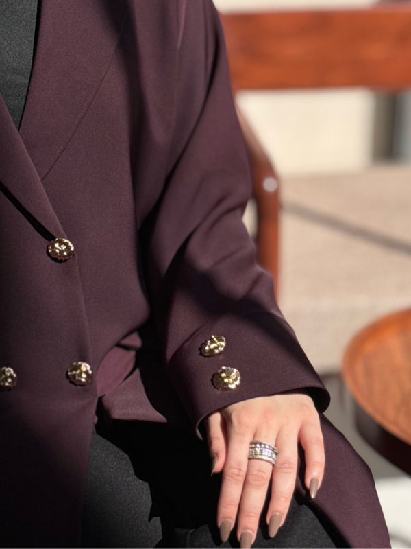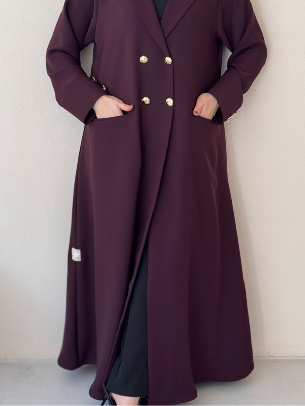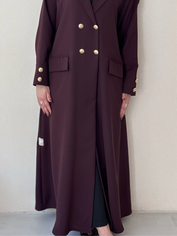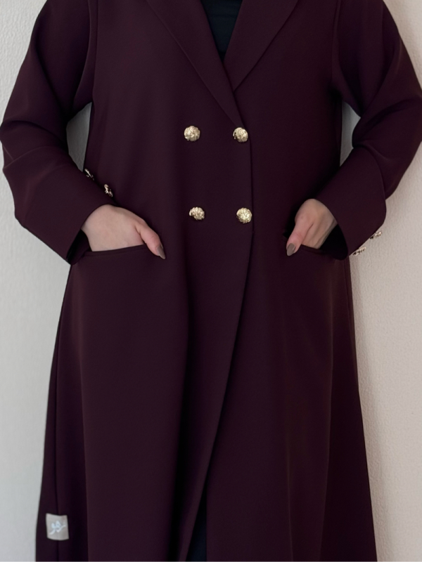 عباية بلاك بيري بلون عنّابي فاخر وأزرار ذهبية تكمّل اللمسة الملكية ✨ قصّة راقية.. خامة ثقيلة.. حضور يلفت الأنظار!