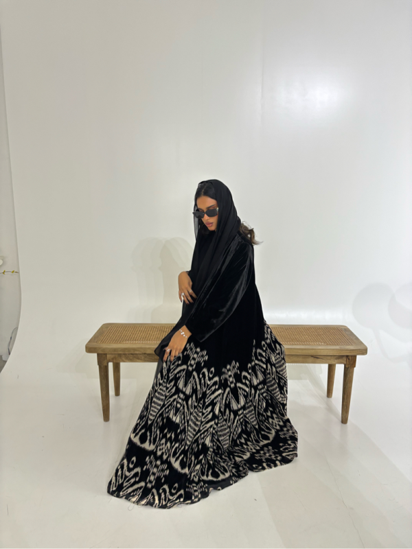 ورود 3D مع خرز لون اسود في العبايه من الخلف واليد قصه العبايه: كلوش