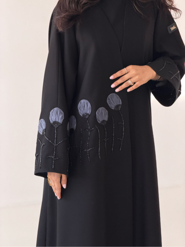 عباية كريب مع شك اللون الاساسي للتطريز رمادي وممكن اختيار اللون التبيض او الاسود بالملاحظات
