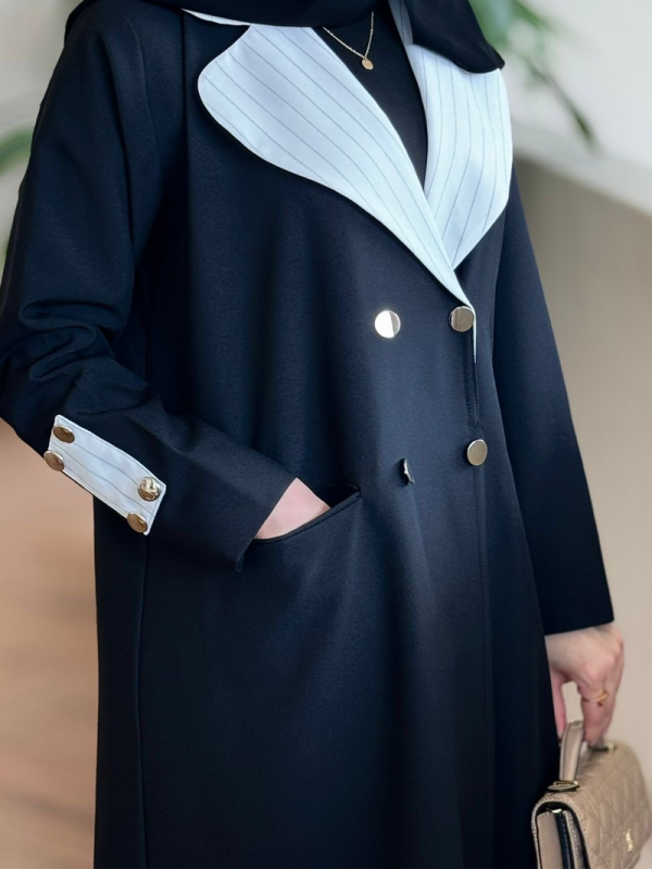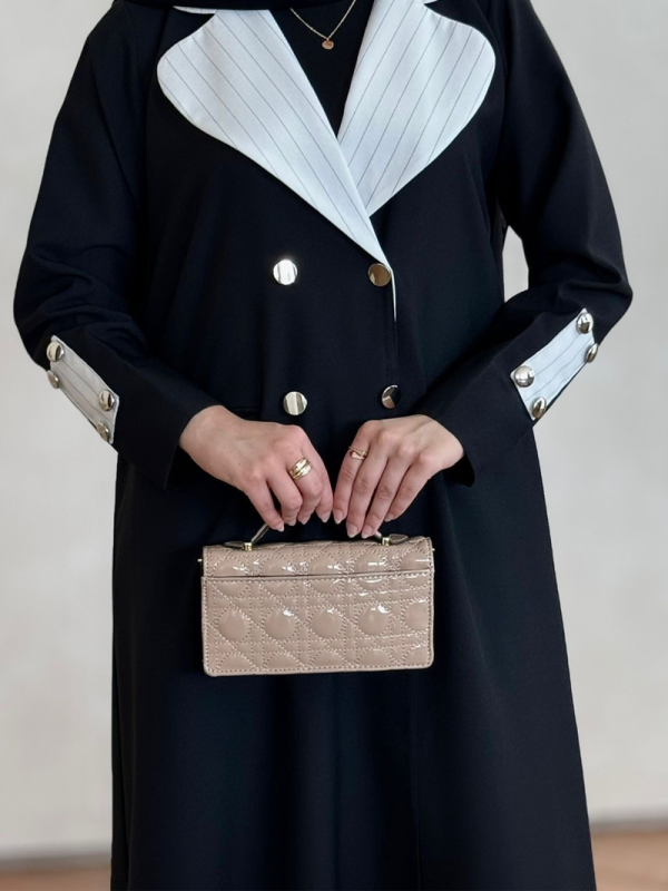 عباية بليزر فخمة بتفاصيل مرتبة وقصّة دقيقة تعطي حضور أنيق وراقي، قطعة مميزة تبرزك بأسلوب كلاسيك عصري وتستاهل تكون أساس في خزانة ملابس كل جميلة 💖