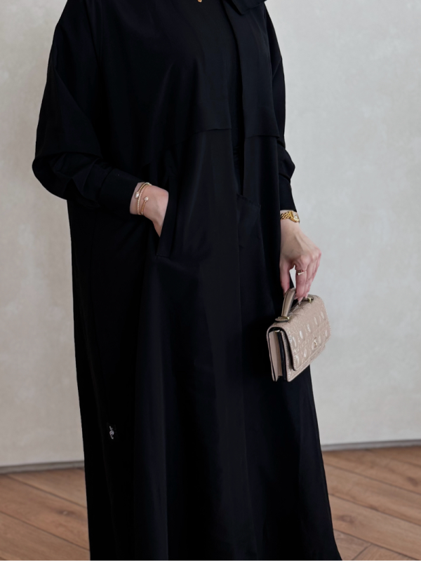 عباية عملية وأنيقة في آن واحد ✨ قصّة واسعة ومريحة تعطي إطلالة راقية، مع خامة فاخرة تحافظ على شكلها وتناسب كل المناسبات. قطعة أساسية تثبت حضورك وتغنيك عن كثرة الاختيارات